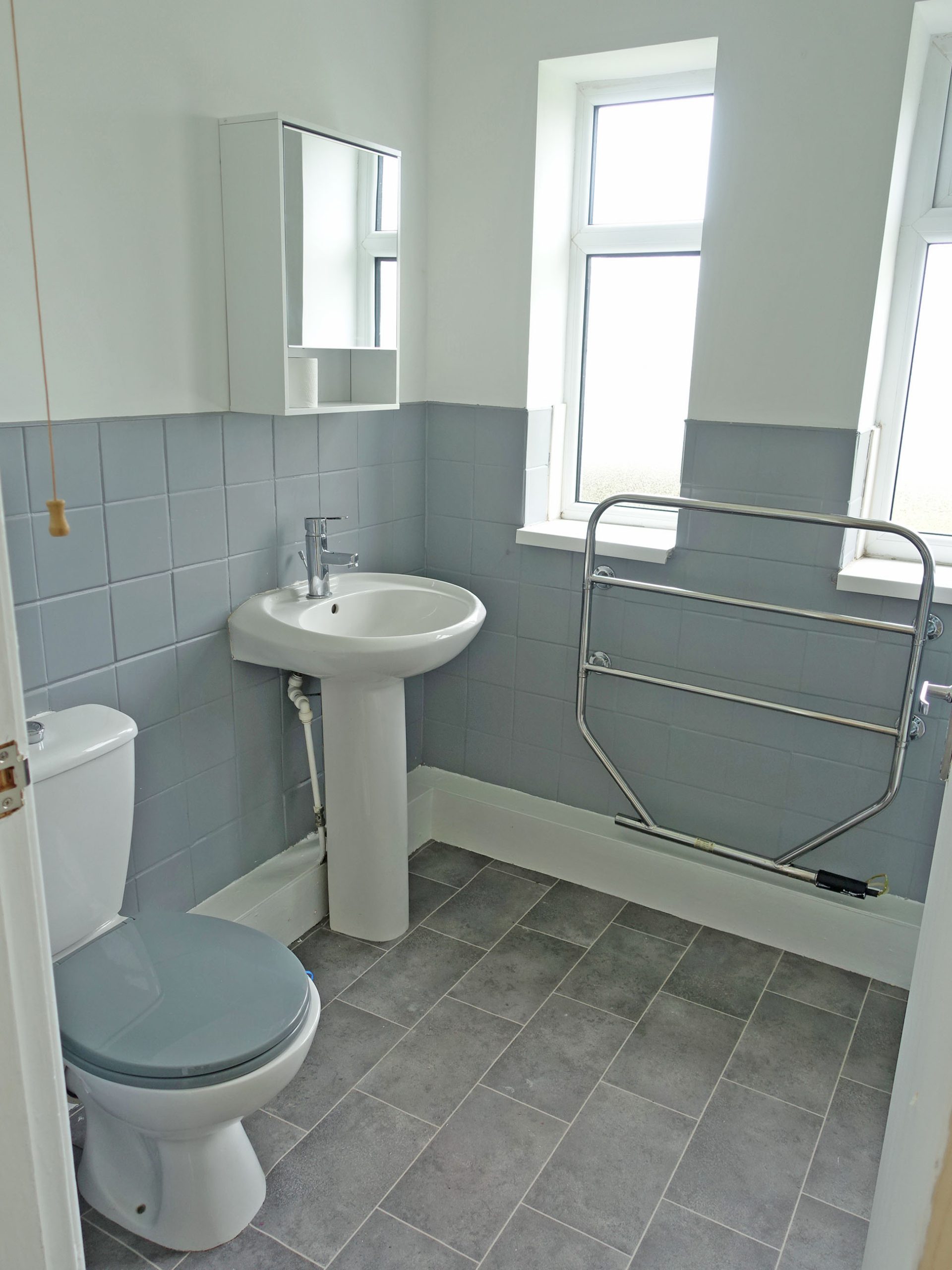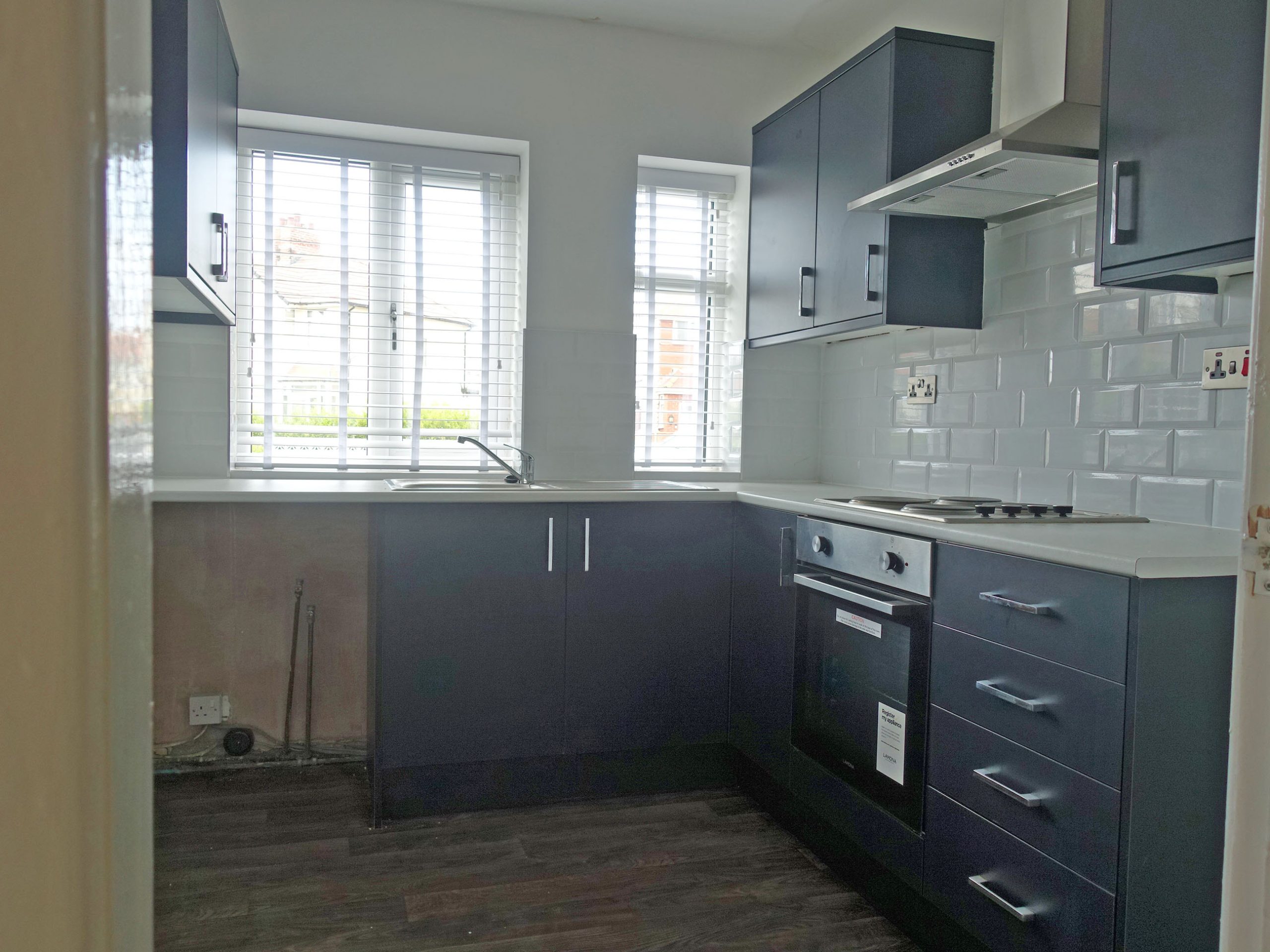 Spacious, unfurnished, one bedroom ground floor flat, comprising of communal entrance porch and hallway, private hallway leading to modern kitchen with range of wall and base units, electric oven and electric hob, space for fridge freezer, plumbed for washing machine, good size lounge with laminate floor, double bedroom, bathroom with white wash hand basin, w/c and walk in shower cubicle. Electric heating, white upvc double glazing, communal gardens, and parking space in private car park. Council Tax Band A, EPC D.